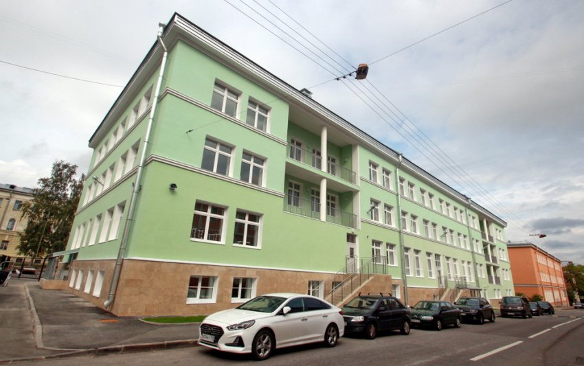 В Пушкине завершилась реконструкция двух советских зданий 406-й гимназии на Леонтьевской и на Церковной улицах. Они имели силикатнокирпичные стены, а теперь получили штукатурку.