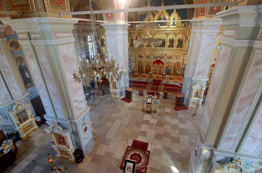 В самой церкви много света, но ладан и воск еще перебивает запах цементного раствора. Новенький алтарь, отражая солнечные лучи, сияет так, что его сложно рассмотреть — глаза слепит.
