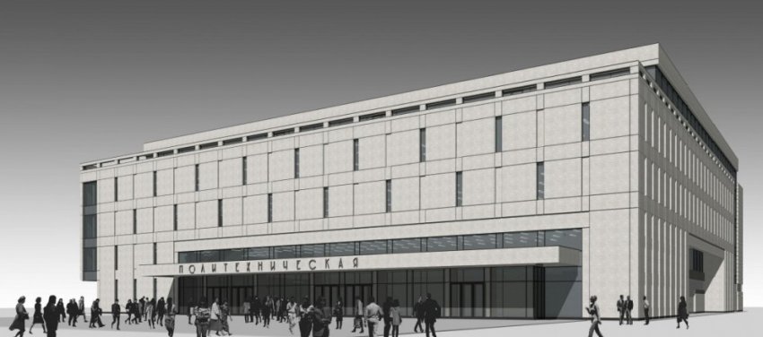 Вестибюль станции метро «Политехническая» вновь захотели включить в новый торговый комплекс, который планировали здесь 13 лет назад. Пятиэтажное здание нарисовали таким, чтобы оно, по мнению автора Андрея Шарова, «не бросалось в глаза».