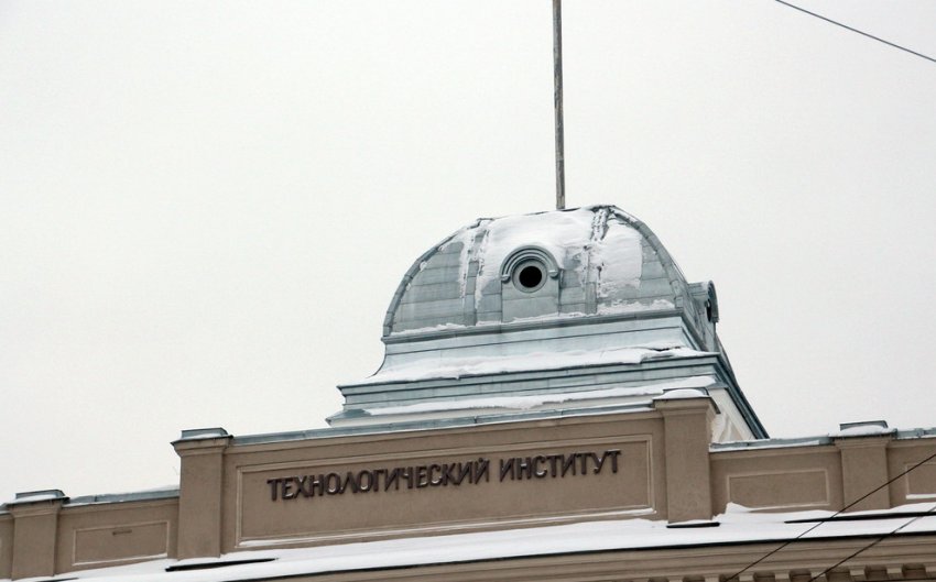 Главное здание Технологического института на Технологической площади, на углу Московского и Загородного проспектов, было построено в 1831 году трехэтажным. В 1898-м его надстроили четвертым этажом и увенчали куполом. В мае 2013-го купол полностью сгорел в результате пожара. Восстановительные работы завершились в 2016 году, но облик купола оказался иным — без так называемого фонаря (дополнительного мини-барабана сверху). КГИОП заявил, что фонаря не будет, так как «завершение купола восстановлено на период начала XX века».