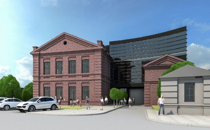 Представлен проект реконструкции двух дореволюционных зданий завода «Арсенал» на улице Михайлова, 14, под театр. Их объединят новой встройкой, которая будет заметно выше старинных объектов.