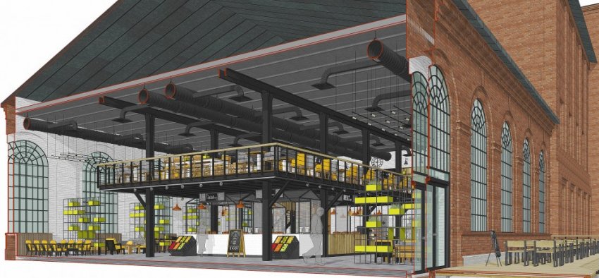 Производственный корпус Санкт-Петербургского трубочного завода на Уральской улице, 1, может стать рестораном. Представлена концепция приспособления старинного здания для нового использования.
