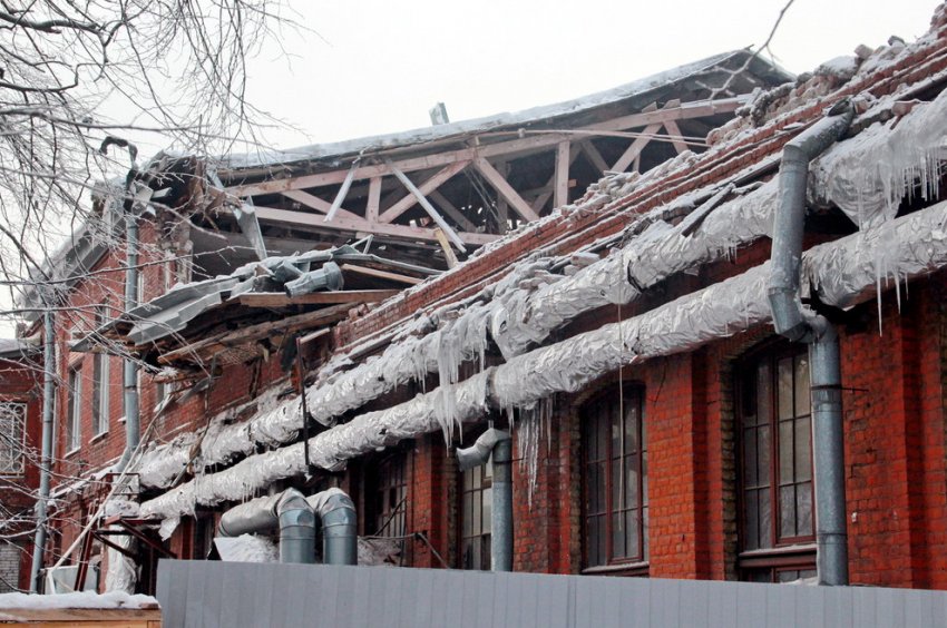 Накануне произошло обрушение здания. Посыпались боковые стены второго этажа и кровля. По всей видимости, теперь объект будет полностью снесен. Сегодня там работают технические специалисты, которые оценивают состояние конструкций.