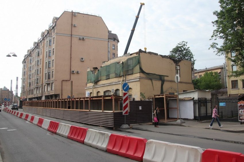 В конце 2013 года ООО «Балт инвест групп» получило разрешение на начало работ. Весной 2014-го демонтировали второй, деревянный этаж старинного домика. Этому предшествовала техническая экспертиза, показавшая необходимость разборки сгнивших стен. Впоследствии второй этаж восстановили из железобетона с деревянной отделкой.
