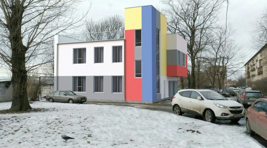 Представлен проект реконструкции прачечной на улице Седова, 71, литера Б, под детский образовательный центр. Здание получит яркие фасады в соответствии с нынешним представлением о детских садах.