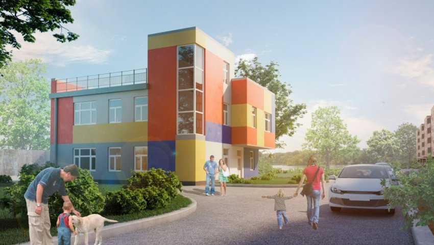 Проект делало ООО «Архиоптерикс». Зданию добавят второй этаж, а фасады получат яркую расцветку — сейчас так стали поступать почти со всеми детскими садами, которые строятся частными компаниями.
