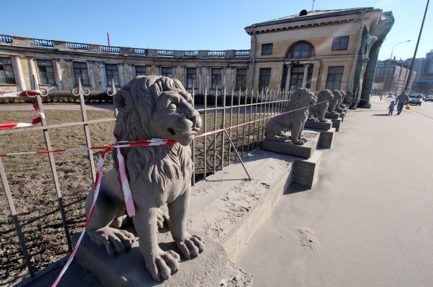 В начале марта читатели заметили, как львов начали увозить с набережной, чтобы привести в порядок в условиях мастерских. Как рассказала корреспонденту «Канонера» начальник управления по охране и использованию объектов культурного наследия КГИОПа Елена Ломакина, завершение реставрации ограды парадного двора намечено на 29 августа нынешнего года.