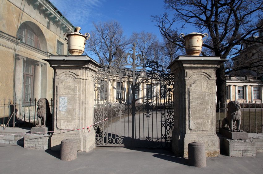 Дача Кушелевых-Безбородко была построена в конце XVIII века по проекту Джакомо Кваренги. Сегодня усадьба охраняется как федеральный памятник архитектуры. В ее ансамбль входит и ограда с 29 львами, изготовленная в XIX веке. Она получила всесоюзную известность в 1973 году после съемок фильма «Невероятные приключения итальянцев в России». По сюжету, подо львами пытались найти клад.