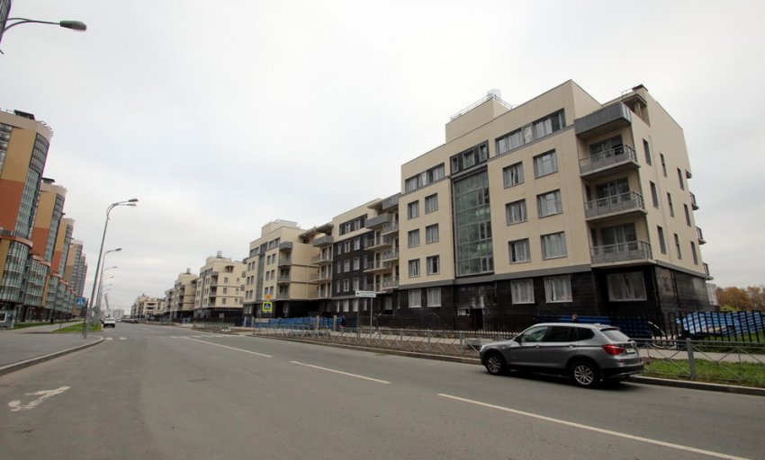 Достроена лицевая часть жилого комплекса между улицей Катерников и Дудергофским каналом. Корпуса объединены двумя аркадами, идущими сквозь весь квартал с юга на север.