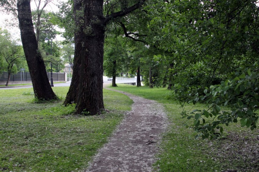 Но сейчас участок находится в собственности не государства, а ООО «Евроресурс». Этой же фирме в 2015 году КУГИ передал в аренду два надела, примыкающих с востока и тоже выходящих к реке Крестовке. На одном из них, западном, по заказу «Евроресурса» планируется построить новое здание — «временную одноэтажную хозяйственную пристройку» с эксплуатируемым чердаком. Объект разместится на том месте, где ранее стоял дом Ильиной; сейчас тут общедоступный парк с высокими деревьями.