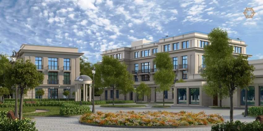 Архитектор проекта Рафаэль Даянов заявлял «Канонеру», что «фасады будут достаточно классические». А недавно была обнародована архитектурная концепция комплекса. И правда, как видно на иллюстрациях, они тяготеют к сталинской стилистике (точнее — к актуальной сегодня, по мнению застройщика, «архитектуре имперского неоклассицизма 30-х годов»), характерной для творчества господина Даянова. Фасады отделают юрским известняком. Современности домам придают большие размеры окон.