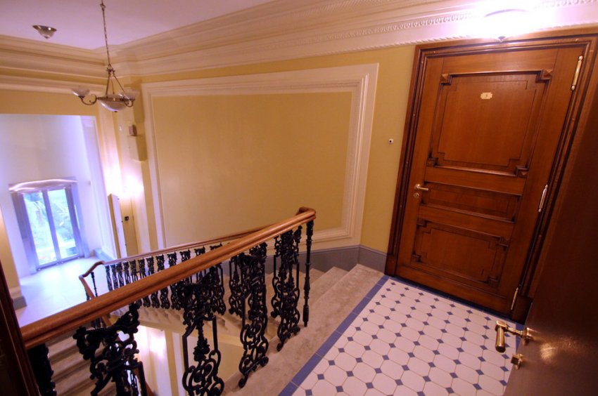 Внутри были заменены все перекрытия и кровли, при этом конфигурацию кровель восстановили в исторических габаритах. Исключением стала крыша дома 15 — в ее скат со стороны проспекта вмонтировали стеклопакеты. У этого же дома появилась полноценная мансарда над дворовым флигелем. С задней стороны к лестничным клеткам всех трех домов прикрепили остекленные шахты лифта — ранее жильцы поднимались на четвертый этаж пешком, но для элиты это немыслимо.