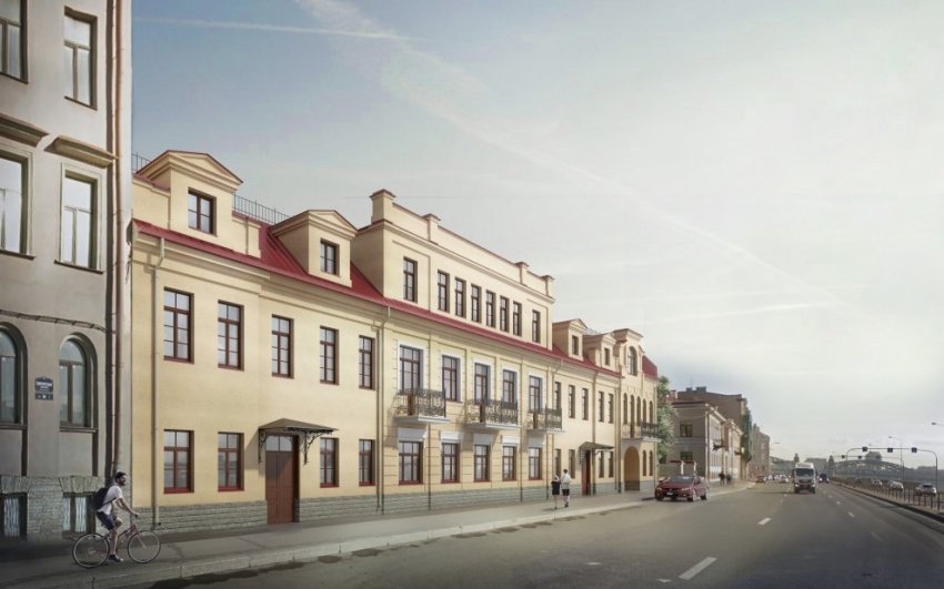 Двух-трехэтажный дом был возведен в 1877–1878 годах по проекту архитектора Александра Долотова. В июне ООО «Н. Э. Ф. — Санкт-Петербург» получило разрешение на реконструкцию его под «общественно-деловой центр». Начальник службы строительного надзора Леонид Кулаков, сославшись на заключение КГИОПа, ранее сообщил «Канонеру», что «аварийные конструкции» лицевого корпуса «предполагается частично разобрать и восстановить лицевой фасад в полном объеме с сохранением архитектурно-художественного решения».