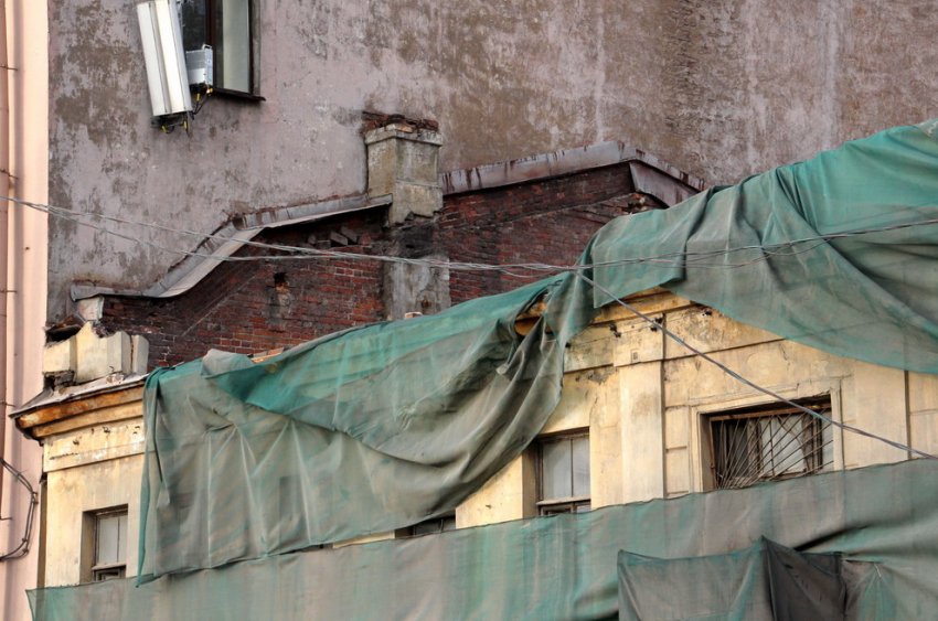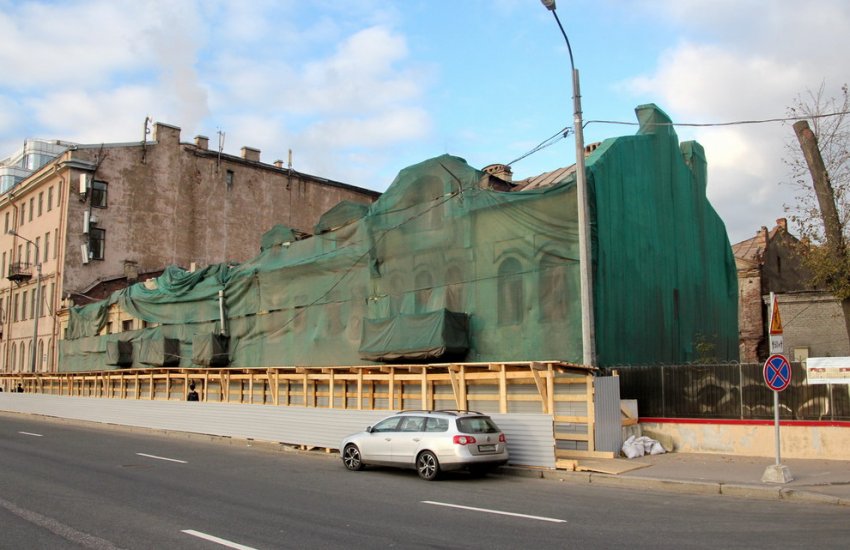 Начался снос особняка Грузинского на Синопской набережной, 66. Лицевой корпус планируется отстроить заново, а взамен появится его точная копия.