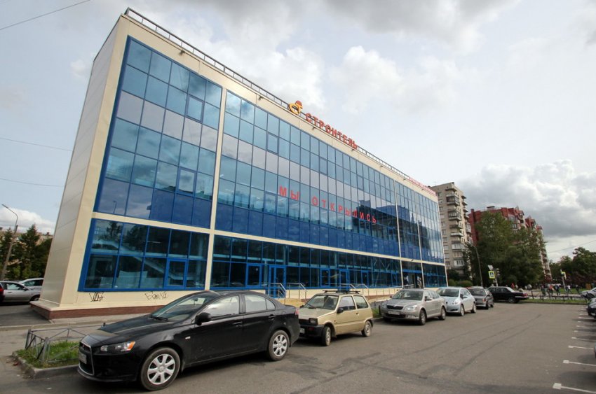 Одноэтажный торговый центр «Строитель» на бульваре Новаторов возле Дачного проспекта надстроили двумя новыми этажами. Фасады остеклили синими зеркальными окнами.