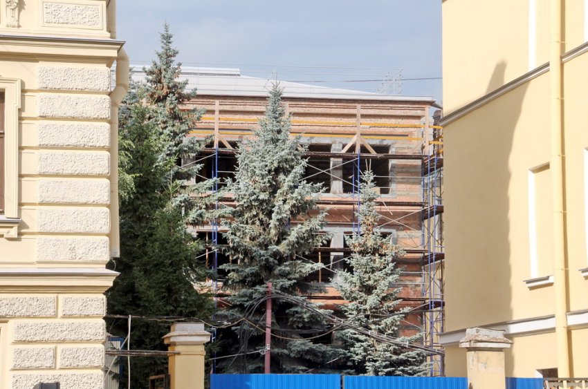 Более того, контракт с генподрядчиком ООО «Реставрационная компания „Интарсия“» (группа «Интарсия») был расторгнут на основании того, что работы будто бы были выполнены некачественно и не в соответствии со сметами. В компании заявляли, что столкнулись с непредвиденными трудностями, связанными с подключением к коммуникациям. Также затянули ремонт обнаруженные в интерьерах фрески XVIII века.