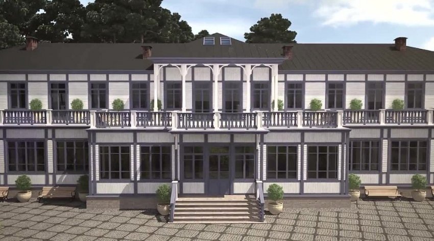 Деревянный лесной пансионат, меньше всего пострадавший в войну, «представляет собой руины». На его месте построят похожий жилой дом на 16 квартир с облицовкой лиственницей, клинкерным кирпичом и природным камнем. Под ним сделают парковку на 18 машин.