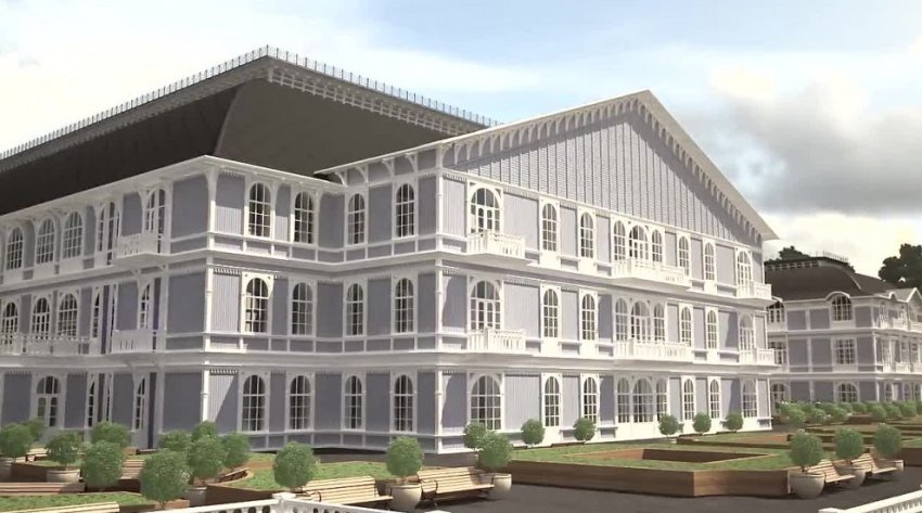 По этому проекту, на месте утраченного курзала, построенного по проекту архитектора Зигфрида Леви, появится кирпичная новостройка, облицованная деревом и отдаленно напоминающая историческое деревянное здание в технике фахверк. Это будет жилой дом («апартамент-отель класса люкс»). Трехэтажное здание вместо шпилей увенчает мансарда. В огороженном забором цоколе оборудуют стоянку и бассейн.