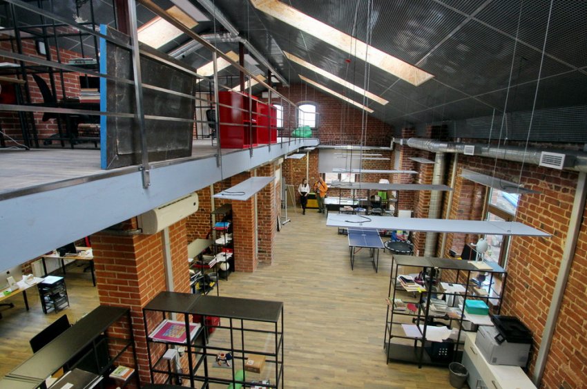 Первый этап предполагал капитальный ремонт двухэтажного административного корпуса (литера Б). Там второй этаж объединили с бывшим чердаком, разобрав перекрытие и организовав второй свет. Внутренние стены очистили от штукатурки. С января 2015 года там находится офис «Беста», рассказал сегодня «Канонеру» официальный представитель проекта «Бенуа 1890».