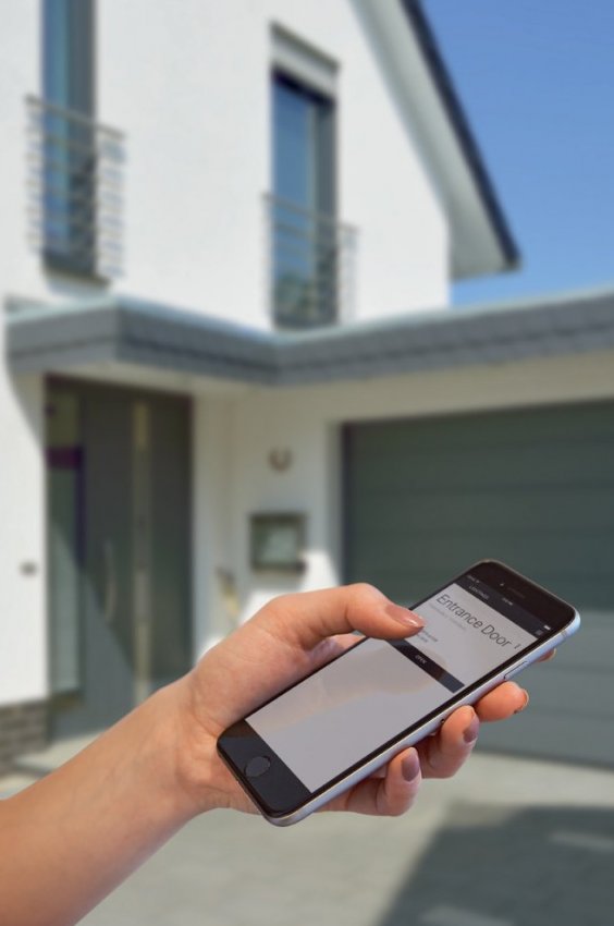 Управлять дверью дистанционно стало возможным благодаря инновационному приложению BlueSecur от Hörmann. Оно базируется на технологии Bluetooth, которая позволяет соединить привод двери с реле и вашим смартфоном. Так вы в любое время можете проверить положение двери, открыть или закрыть ее. Дистанционно открыть входную дверь можно и с помощью пульта ДУ Hörmann.