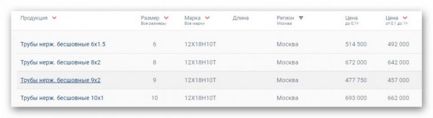 Металлопрокат из нержавеющей стали имеет достаточно высокую цену. Однако его качественные свойства позволяют в несколько раз увеличить сроки эксплуатации готовых изделий, что это делает его стоимость экономически оправданной. Для сравнения приведем несколько позиций каталога нержавеющих труб металлмаркета «МЕТАЛЛСЕРВИС».