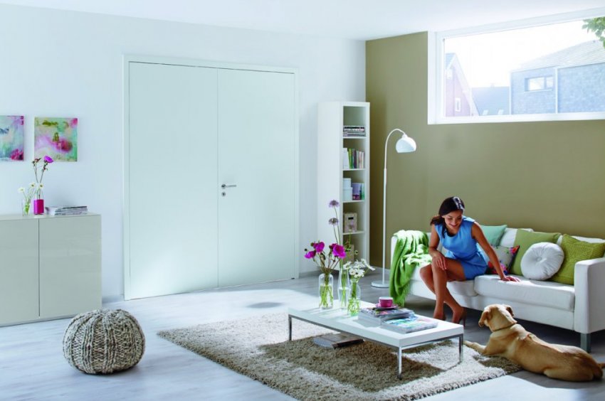 С помощью дверей серии DesignLine Concepto 4Х4 от компании Hörmann можно смело реализовать Ваши идеи, касающиеся нестандартного интерьера. В рамках концепции 4х4 можно выбрать одну из четырех разных поверхностей, комбинируя ее с четырьмя разными цветами. В зависимости от пожеланий, можно совместить в интерьере ультраматовую, блестящую, рифленую поверхности и новую поверхность под «лён» с четырьмя разными цветами: белым, светло-серым, серым под антрацит и новым серо-коричневым цветом «Taupe».