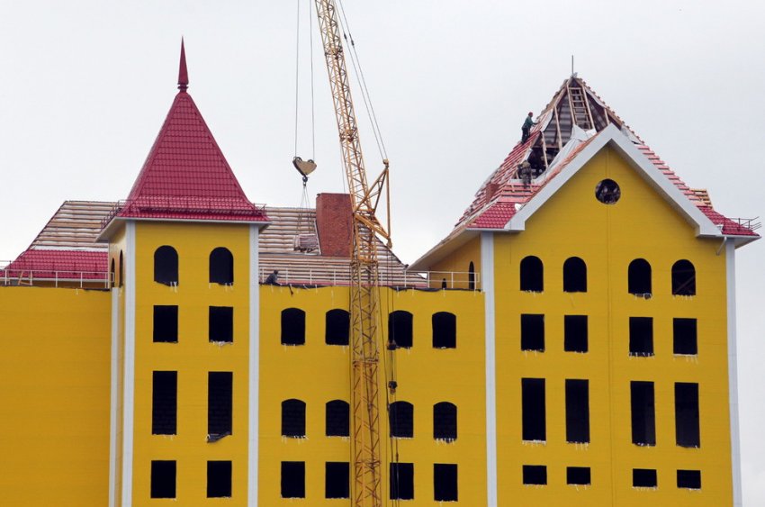 На проспекте Девятого Января, 11, корпус 2, ведется строительство одного из самых необычных промышленных зданий современного Петербурга. Швейную фабрику решили выполнить в формах замка.
