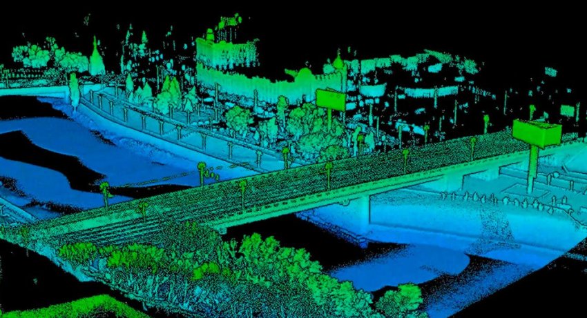 Воздушное лазерное сканирование рекомендуется использовать для получения максимальной точности, а также при съемках с такими помехами как, например, лесополосы и другие препятствия. Несмотря на наличие деревьев, лазерный сканер при съемке с дрона создает точную топографическую карту с отображением рельефа местности под кронами и привязкой к координатам местности.