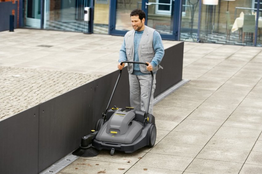 Кроме этого, существуют толкаемые подметальные машины, оснащенные системой всасывания пыли. Всасывающая турбина с электроприводом обеспечивает удаление из бункера попадающей в него мелкой пыли. Эффективная система фильтрации, используемая в подметально-всасывающих машинах, гарантирует выпуск чистого воздуха. Поднимаемая роликовой щеткой пыль засасывается турбиной и оседает на фильтре, который в зависимости от области применения может быть изготовлен из бумаги, полиэфирного или нетканого материала. И в этом случае непрерывную работу и долгий срок службы фильтра обеспечивает устройство его очистки, которое может быть автоматическим или приводиться в действие вручную.