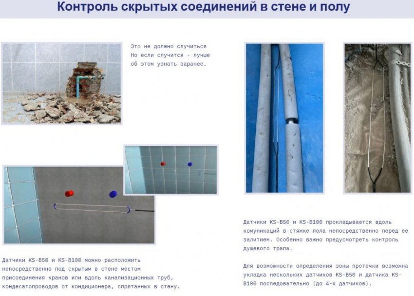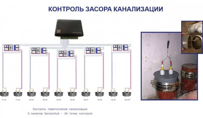 В системе канализации датчики лучше расположить в здании там, где вертикальная труба переходит в горизонтальную, и где канализационная труба выходит в колодец за зданием. Именно в этих местах чаще всего происходят засоры. Что касается протечек водопровода, сейчас в стандартах прописана их фиксация только на полу, но этого явно недостаточно. Жидкость может находиться внутри стен, потому что там проложены трубы, внутри потолка, потому что крыша может протекать.