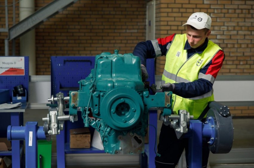 Компания Volvo CE стала платиновым партнером финала IX Национального Чемпионата WorldSkills. Рабочий момент на площадке в компетенции "Обслуживание тяжелой техники" - конкурсант устраняет неисправности двигателя