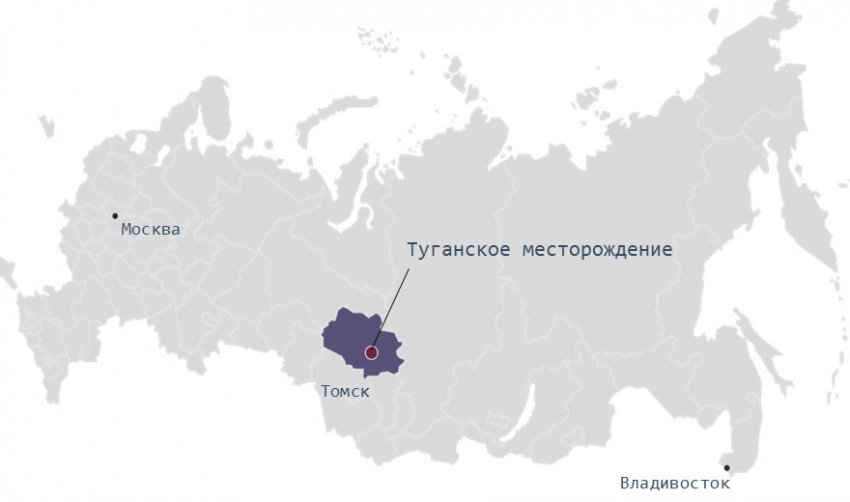 Самое крупное месторождение ильменит-цирконовых рудных песков - Туганское месторождение - находится близ Томска. Балансовые запасы рудных песков Туганского месторождения составляют 225 млн. тонн. Запасы кварцевых песков, получаемых в процессе обогащения, составляют 171, 7 млн. тонн.