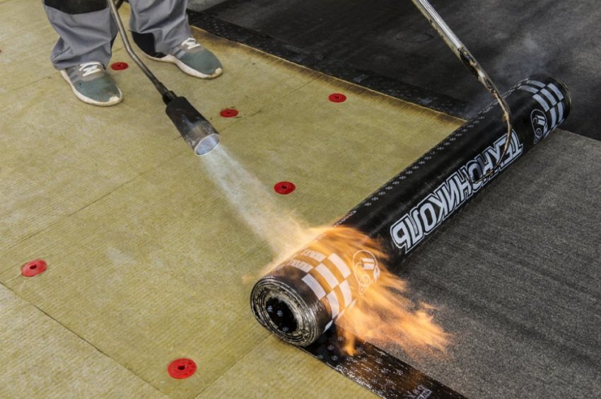 Плиты не проминаются и не деформируются при ходьбе человека или складировании материалов/оборудования на этапе монтажа и эксплуатации. Главное преимущество кашированных плит – исключение из кровельной системы стяжки. Из кровельной системы исчезает слой, связанный с защитой теплоизоляции и упрочнением самой системы. При этом наплавление гидроизоляции можно осуществлять непосредственно на утеплитель без праймирования поверхности.