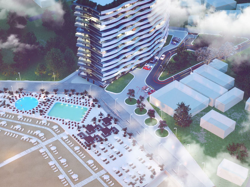 Основным заданием при проектировании комплекса AURA Аpart, которое началось в конце 2017 года, было создание легкого фасада, который гармонично дополнил бы картину морских пейзажей и побережья.