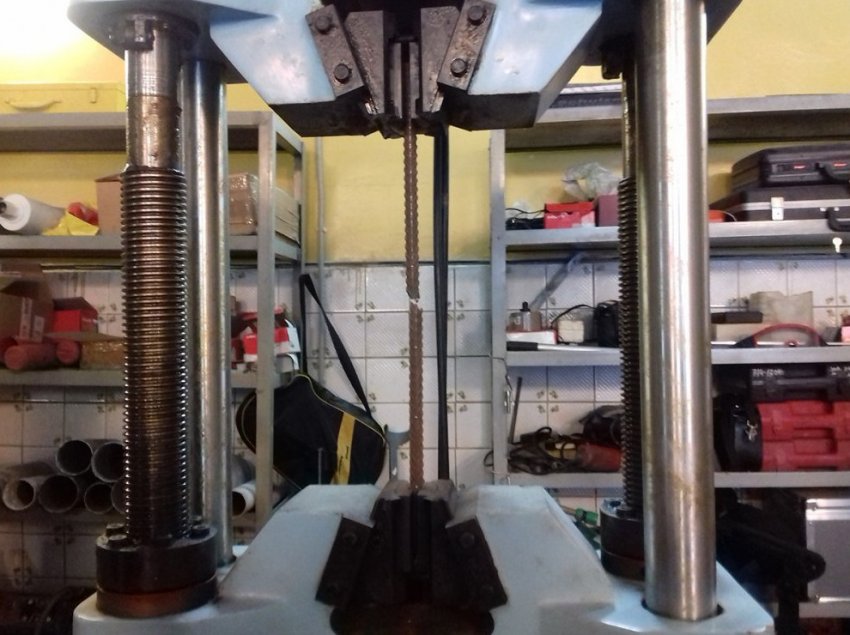 А рядом уже начинает работу «разрывная машина». Сюда поместили кусок старой арматуры. На мониторе высвечивается достаточно большая разрывная нагрузка - 148 мегапаскаль. Арматурина рвется ровно пополам. Результат испытаний: конструкция, откуда взят образец, еще вполне годна к эксплуатации, она уверенно сможет противостоять нагрузкам.